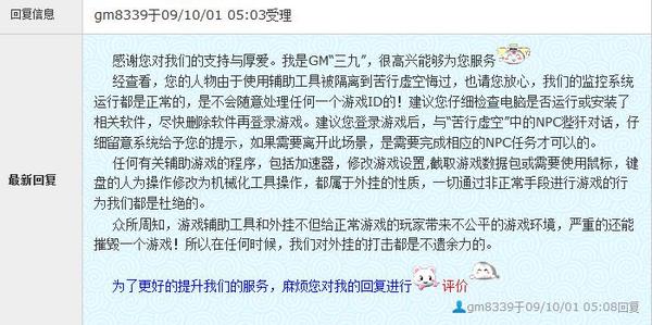 3年前,2009年国庆节。被封号的理由说我用了辅助工具,也就是俗称的外挂。