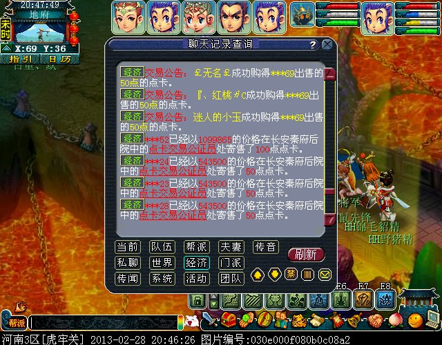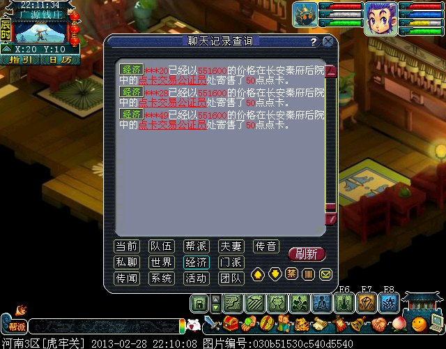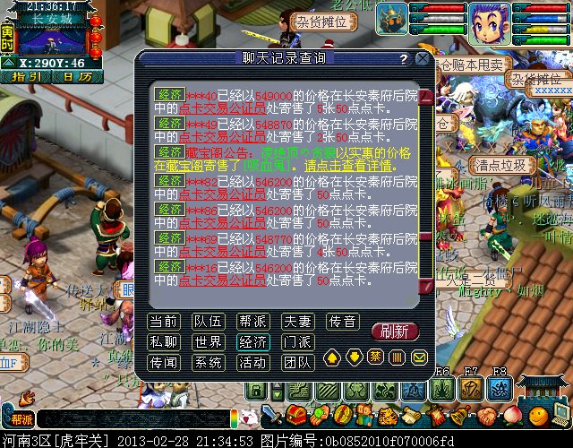 最近我们区出现了一批神秘的卖 游戏内寄售点卡的人~只卖50点的~~每次上架的时候在秦府看不见人,3-4个ID(一般是3个ID一起前后不差1秒)一个ID寄售一张50点的 上的价格一样 目前价格是543500 (偶尔会根据市场价格波动下)