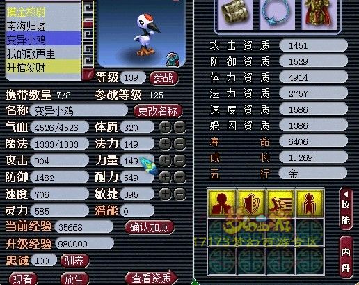 召唤兽成长表