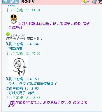 我问他,这个人你认识?他说不认识,只是聊了一下,不过对方愿意先武器,后钱。。我更觉得事情不太妙,所以我对他说:梦幻交易物品3天后无法找回。叫他小心一点。所以我朋友在22号的晚上10点给卖家打了5000快。然后拿到了武器。他创建了个19J的小号拿了大黄刀砍了69的在我面前得瑟。上图为证: