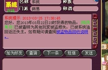 GM!我想说!你出了一个找回的流程是为了我们的利益!!现在却成了骗子骗人的手段??你说你不处理线下交易的问题,但是找回了就关你GM的事情了吧??这个系统是不是存在一个漏洞?这么好找回,为什么我朋友曾经摆错9999W卖的神龙却找不回了???