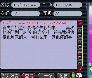 注意我说的ID。到底这个ID是谁上的我也不知道!!然后后面还有明秀园我们的一个朋友和这个89DT的老婆的对话。