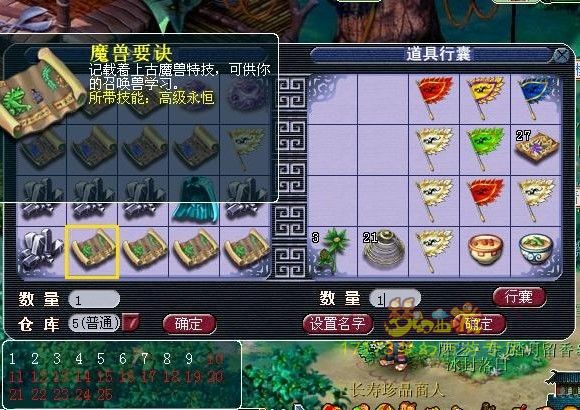 第75条:道具里面摆放有序,比如撸主就是飞行符 CA77 AL77 CS77 ZZ77 金镶玉3个 九转两个五龙3个 然后就是包子