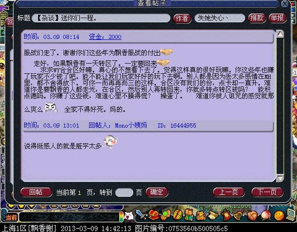 一个9年未能合过一次区的服务器,上海1区飘香谢,在面临6合2的情况下依旧没有合区。下面就是飘香谢这个9年来未合过一次区的服务器的真实写照。