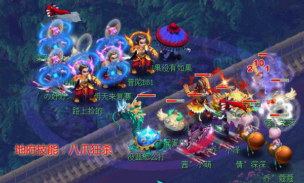 打蓝他们有力地府可以拍蓝跟破碎,龙宫可以龙吟,盘丝毒女打蓝也是效果很棒。打血就很直观了,力地府、普陀给龙宫灵动、盘丝瘴气。