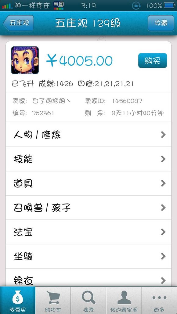 由于充钱藏宝阁延迟,导致我喜欢的一个方寸被别人秒了,很伤心,于是我买了另一个价钱一样但比方寸差很多的五庄。(慢慢看,亮点在最后哦)