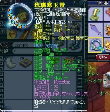 出160熔炼后,要淘汰的链子,敲到10还能用下。事实上估计以后也不会换160的了因为灵力没感觉。符石为门派技能
