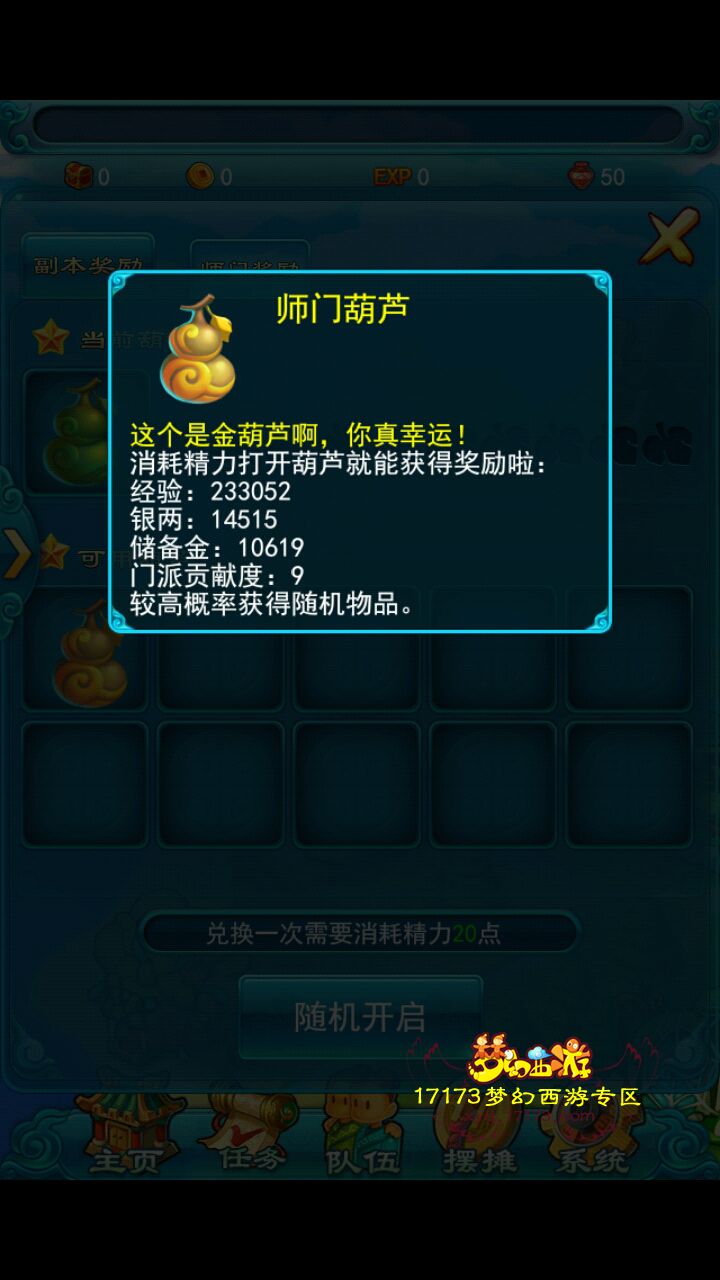 3、口袋版“师门”、“副本”奖励获得方式调整:玩家无需消耗精力,即可直接参与师门、副本,所获得的奖励可在“宝库”处消耗精力兑换;