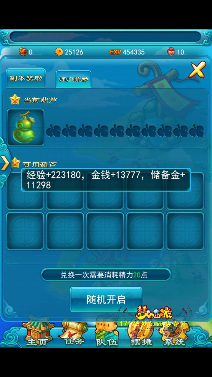 2轮得到18点贡献,45万经验,5万左右的钱。运气不好没得到任何东西,消耗了4点仙玉。