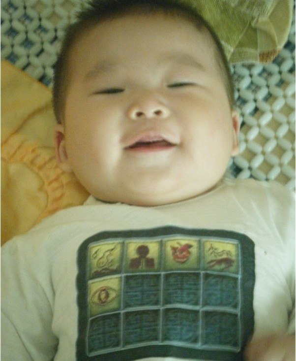 这是小编儿子5个月的时候,我们全家DIY的一套亲子装。