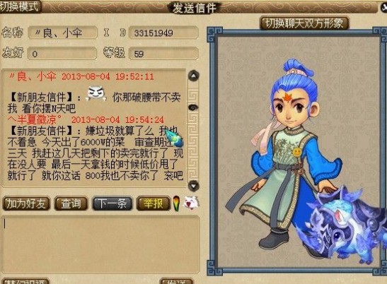 事件大爷就是他, 他M我 便宜点 我说800W 然后他说650 我不想卖 我一边玩其他的 就没理他 然后他说700 我又没理 750 我没理