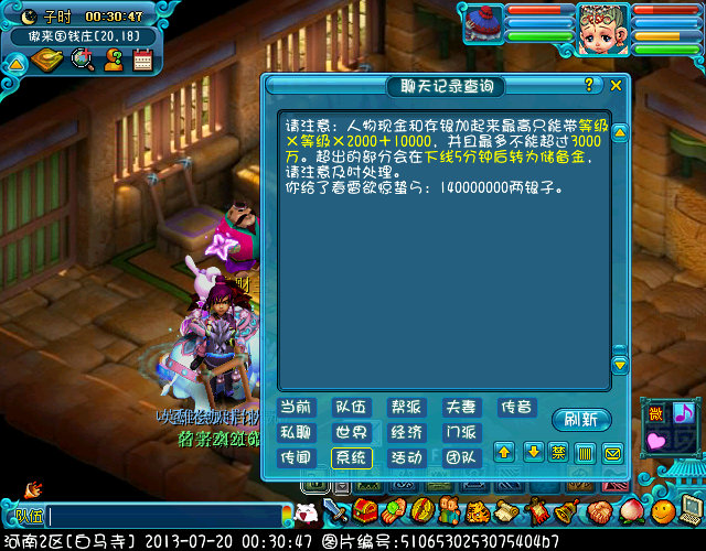 因为每天特殊账户取钱有限制,1天只能1亿4千多万,所以我就在7月19号和7月20号的时候分别各取一亿四千多万,合计二亿**,并且在7月21号又取了一亿四千多万,加自己本身的一些钱,共计四亿九千万,交给春雷,然后得到神兽的。我们区比例是1400万:100块,四亿九千万就相当于人民币3500块了。