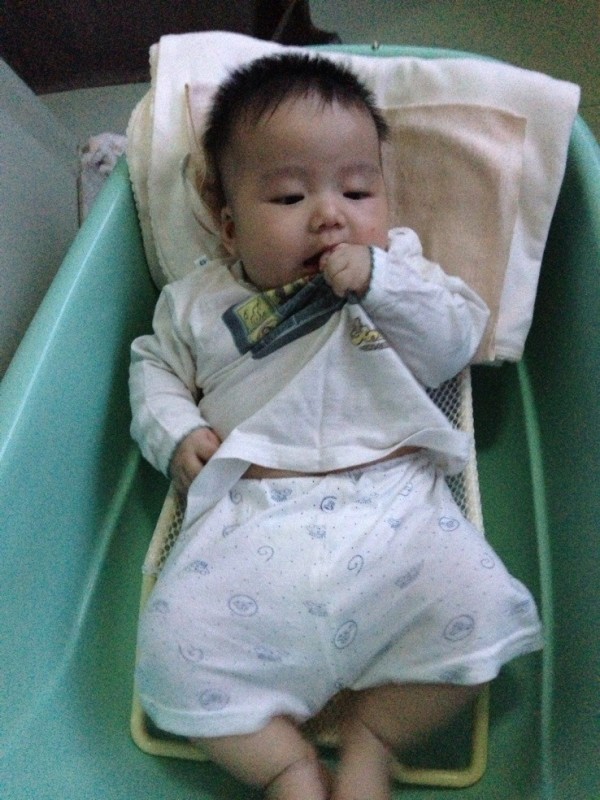 这是我家大娃五个月的时候照的,现在都已经两岁半了,衣服已经没办法穿了。
