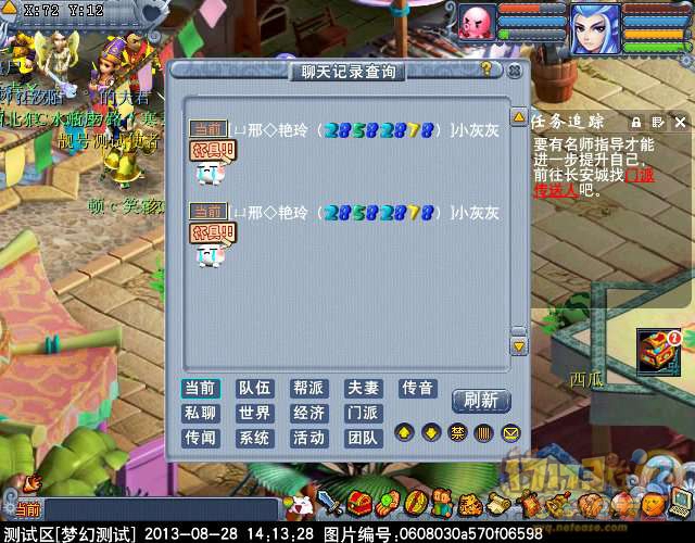 流程是先选择靓号,选好之后点击更换靓号。之后就****重新登录之后就换靓号ID了,但是不知道要多少仙玉,在所有的聊天频道都会显示靓号,如图所示