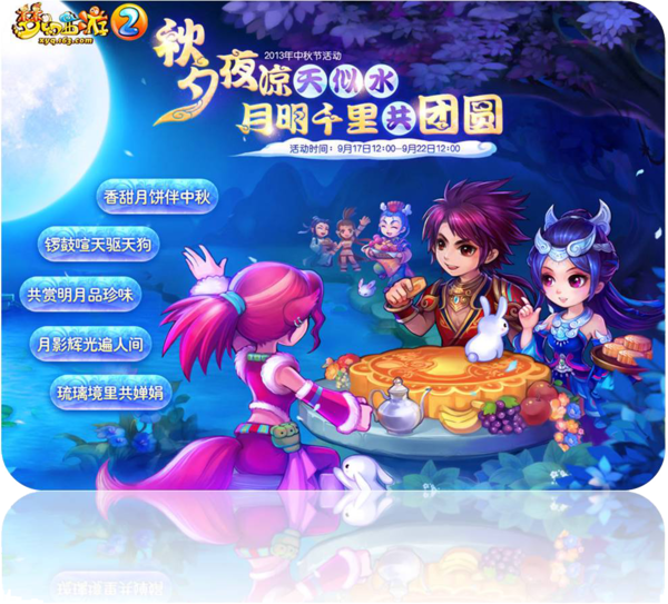 香甜月饼伴中秋活动期间全天 长安城(230,120)的月宫仙子≥30级,≥3人环式任务
