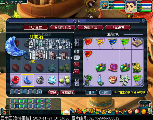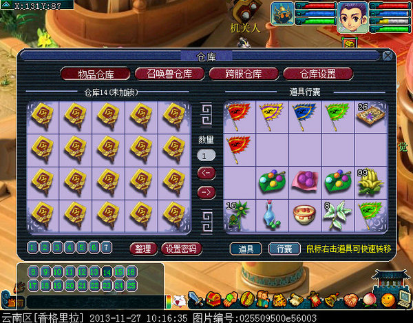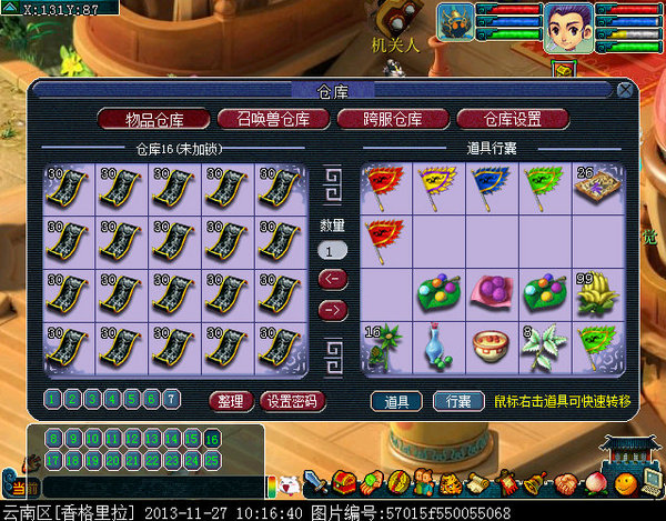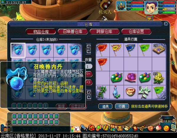 仓库9:10个迅敏,10个矫健(内丹仓库几乎都是齐天大圣点化的,当时10W没人要的时候点化的现在已经翻很多倍价值了)
