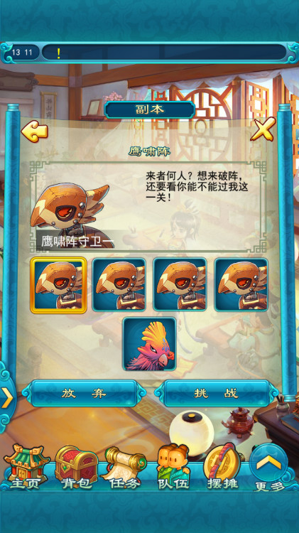 点击“任务”建筑进入副本,进行挑战。