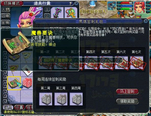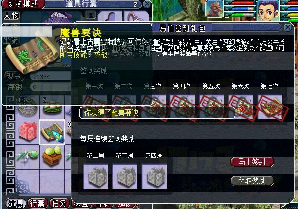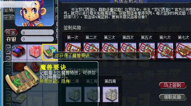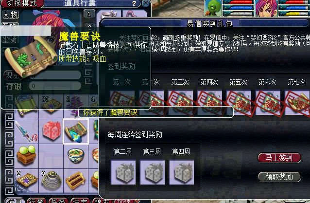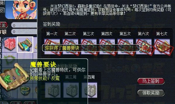 综合来看,签到七天最划算。前七天必得东西。第7天也是必得兽决,虽然是低的,但是签到1个月的高兽决是最坑的,基本是高级经验,小号不需要。