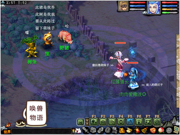从建邺城去往长安城,有一条必经之路:江南野外。自打我来到这里之后,便迅速招募了野猪、树怪两名手下,在这风景秀丽的江南野外心安理得的做起了我的“江南野外小霸王”来。 卖萌的第一法则就是不但自己要萌,而且也不要放过任何萌物。所以每日除了日常的去王婆那卖萌蹭蹭瓜吃之外, 最大的乐趣就在于打望过往的玩家了。江南野外常年人来人往,每每遇到心动的萌物,尤其是萌妹子,我都要带上我的两员得力干将出来打劫一番。 所以下次你在江南野外突然遇到跳出来的我,请不要惊讶,自己乖乖把萌物上缴吧。
