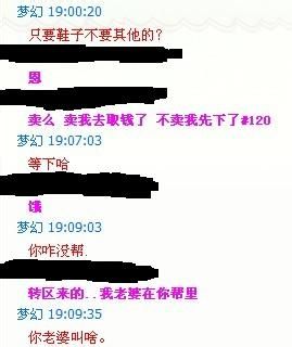 事情的起因是男猪脚在JY摆摊卖一个130级不磨鞋子,摆摊价格7000多W,想给女儿号买来用,于是私聊卖家5500W(当时特殊里只有这么多,留了点生活费,觉得7000W还5500W还不错了,我也不是很懂装备)