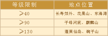 活动期间,每个整点,满足条件的队伍可根据系统公告的提示,前往各地挑战仙茶小精灵。其中,不同级别的玩家可前往不同地点挑战,如下所示: