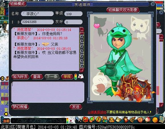 孩子拒绝收信。不过据说父母已经通过区里的朋友知道哪个网吧了,梦幻还是有爱的!