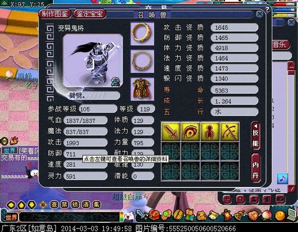 鬼将1993伤害,接近2000的伤害!装备肯定不会垃圾,资质和技能都很是不俗,在藏宝阁这么一只宝宝不会低于1500R!