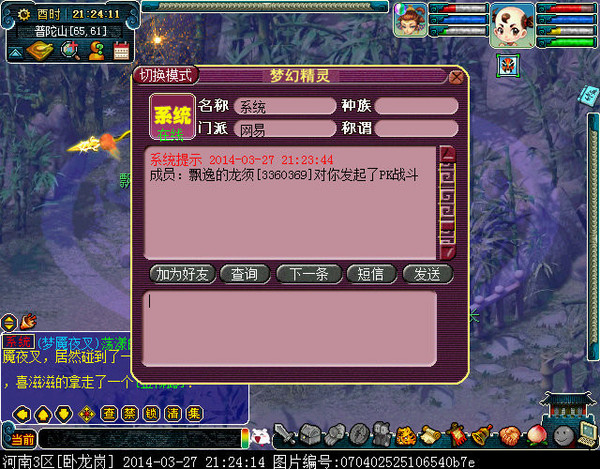 【内容】2014年3月27日,星期四,晚上!巡逻队队长在普陀山打图时,被一名155级龙宫偷袭!