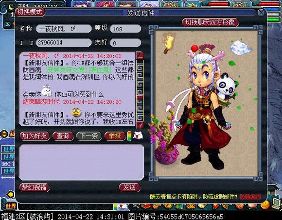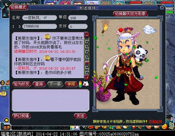 楼主在世界喊1E收隐攻,后来想了一下就改了收女衣,就喊了一次,就招来了这货,