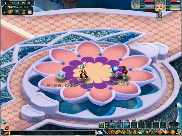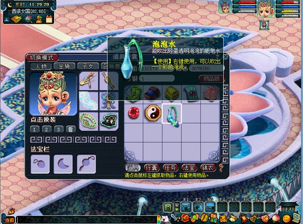 玩法介绍:儿童节活动期间,等级≥10级的玩家,可以前往长安城(230,120),找欢乐童年大使领取玩法专用道具“泡泡水”,于10:00-11:00、14:00-15:00、18:00-19:00,前往建邺城、西梁女国、傲来国参与该玩法(消耗体力)。