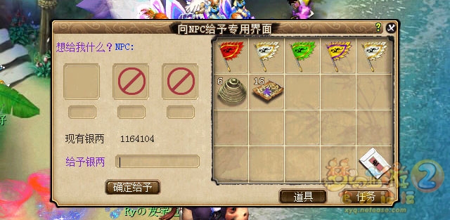 组好队伍后首次点击无名会获得“奇技宝匣”和三颗“秘制仙丹”(每天第一次点击NPC获得)。“奇技宝匣”的效果下面会介绍,“秘制仙丹”的效果是使用后获得特殊状态,环任务获得的金钱转变为储备金,储备金奖励提升为2倍。该道具仅在“略施小计”任务有效,持续时间一小时,不能重复使用。秘制仙丹无法交易、给予、摆摊,仅能自己使用,过期时间为当天,请及时使用。