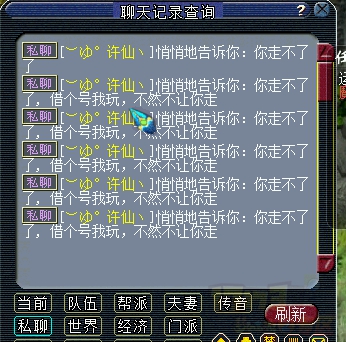 还有张图没截图到,是他给我发的临时,大概意思就是他体验了,不能回复我,让我看私聊,当时我就惊呆了,然后我09DT,带着押镖装备,一个破血,弄死了他144LG,乘机走下擂台。。。。