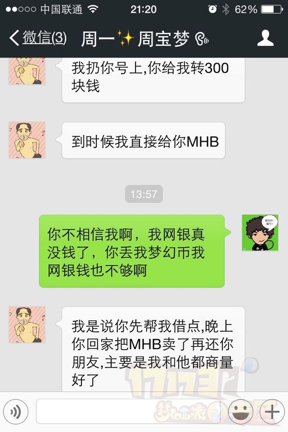 可是事情没那么简单,就在前几天这女的突然跟我说在CBG看上个69凌波城的号 1600R,跟我借钱买,我说我网银没有那么多了,她就说我小气什么的,我说你爱咋想咋想吧。之后她就不说话了,我当时也挺生气的,我们只是游戏里的朋友,我说带你玩可也没说什么都帮你吧,1600元毕竟也不是小数目,我还没那么大方把钱借给一个网络上认识的人。