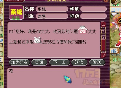 这里不免有些小感动,这是良心GM,中国好GM,帮朋友找回了放在临时道具栏、掉线了已经消失了的物品。如果梦幻团队的每一个员工,都能够这样耐心的,设心处地的为玩家着想的话,我们的梦幻,必定会越来越好!点赞!