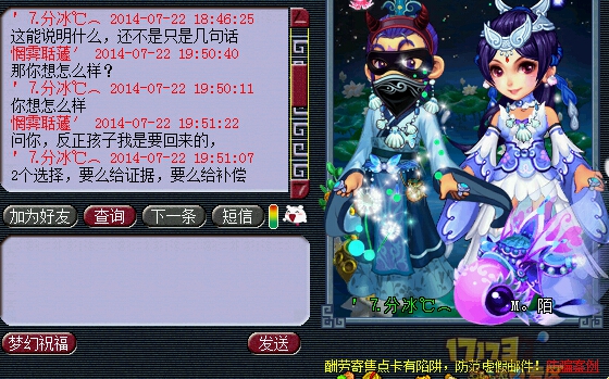 可怜的女子,终于爆发了,其实老是老子,就不要孩子了,看你想谈判了,还提价了,还找这样的借口。我想说,你不是说,你有很多朋友.?要和我们玩信息战?要不是老子高考回来,信息战,你不够格。还不是狗一下的开了陌生人,你有种开起来