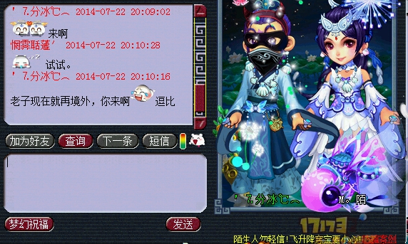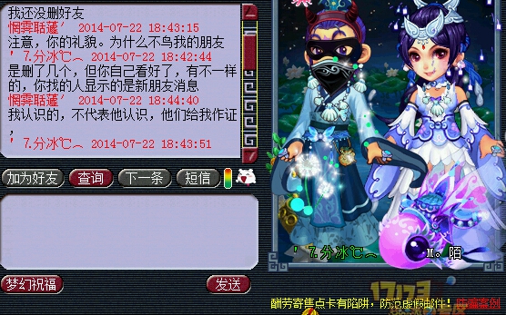 事情是这样的,那个女的孩子放在家里,然后那个Wz本人不想玩了,就去卖号,孩子都没有还。后来就登记了,又有个*丝接下了号,买了,女生就想要回孩子, 但是那个男的,开始就没有打算还,一开始是说,要给我证据,可以还给你,然后就说要名人担保,大爷的,一个孩子找名人,你以为你是谁,这么想出名?