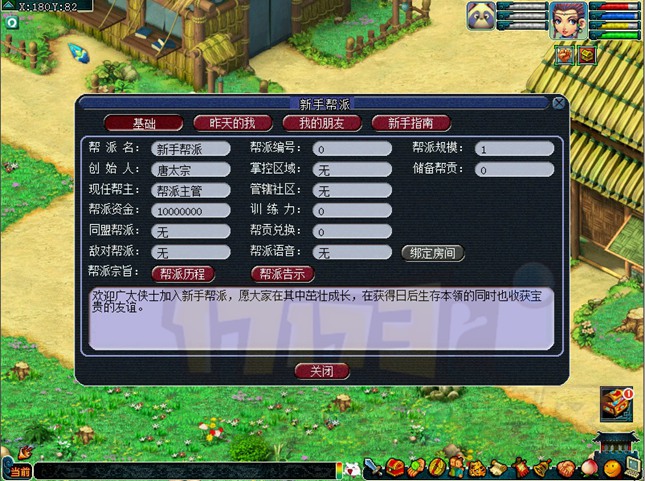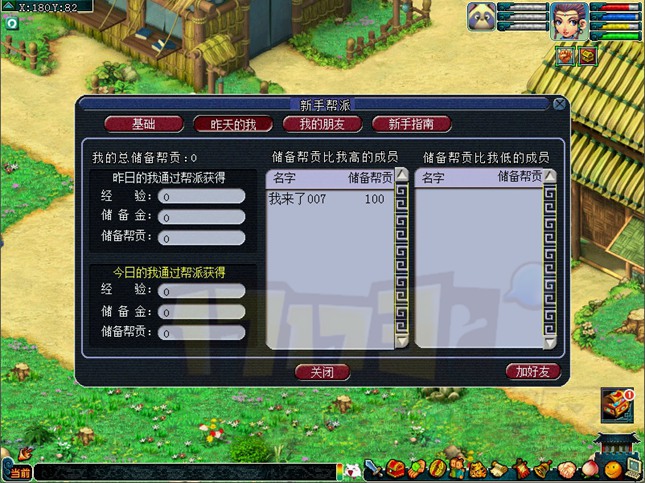 4.新手帮派成员的最高等级为65级,储备帮贡的上限为500(包括消耗的帮贡),专用资材的上限为100。