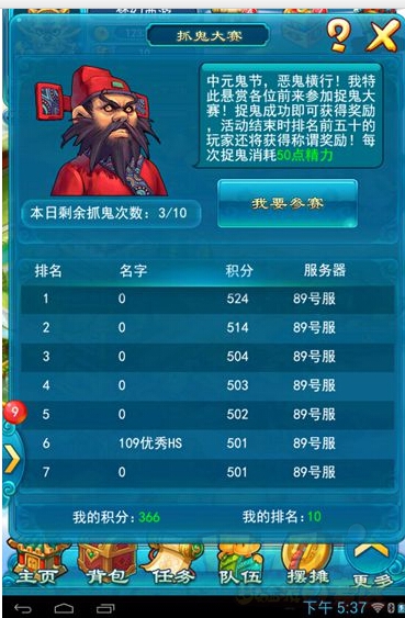 活动流程:活动期间,选择主界面突发事件列表中的“捉鬼大赛”图标即可参与活动。
