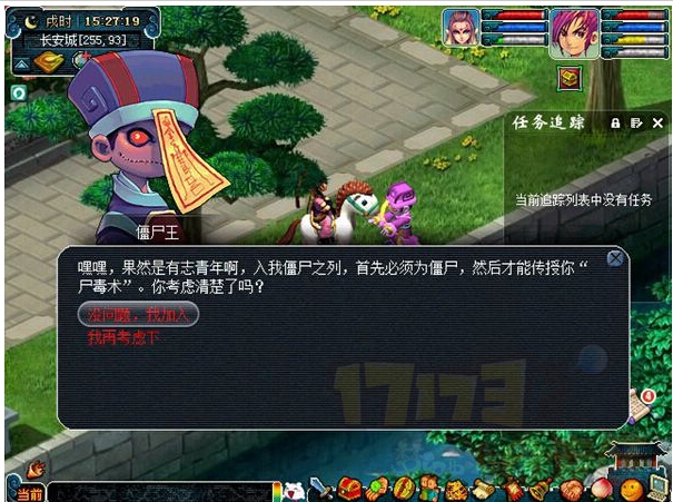 每年一度的人鬼乱斗,僵尸大作战又开始了。玩家在中元节活动期间,可以到长安找僵**(258,94)加入僵尸阵营或茅山道士(360,250)加入道士阵营。加入阵营后,可以学习对应的技能及称谓。