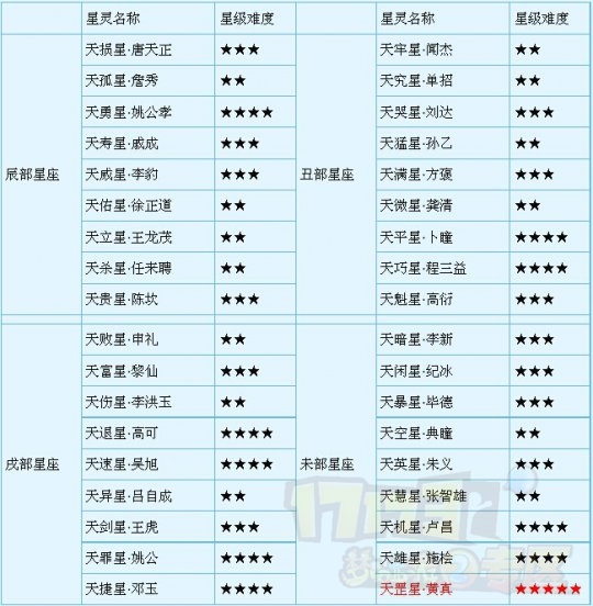首先,奉上天罡星难度一览表: