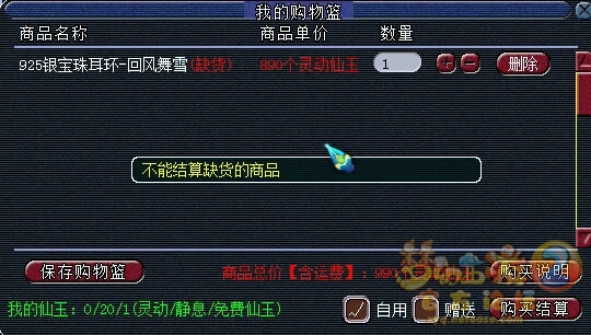 朋友过生日了想送个耳环,想用仙玉买显示无货,到网页上看却显示有货,你要是不想卖干脆就下架好了,干嘛这么玩有意思吗?不信的朋友现在自己到游戏里的周边老人那看看!商品名:925银珠宝环。