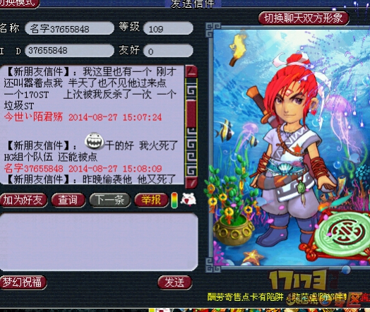事情的经过是这样的。 楼主朋友在HG组队伍 然后就无缘无故被点了 然后楼主当然要问为什么 理由让人无法接受!!!!玩游戏玩出优越!!