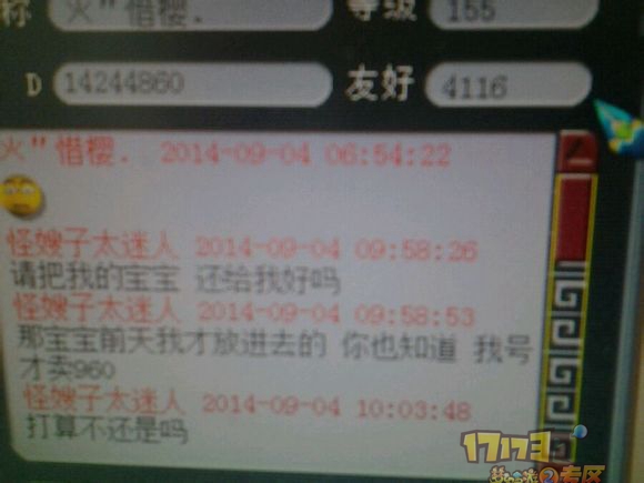 事情是这样的,我玩一对夫妻号,女号不想玩了就挂cbg了,今天卖了,就在昨天我把我两个宝宝放家里了,还有1100w钱,宝宝价值1r 没枷锁 刚刚我回家看全都他拿了6个仓库稍微值钱点东西都被洗劫一空,感觉就像遇到强盗一样,大神们我该怎么办,今晚睡都睡不着