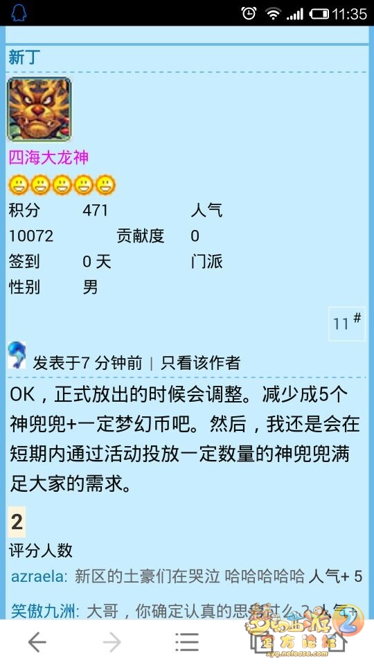 话说,最近策划与玩家的交流明显增加,策划们蛮拼的呀。