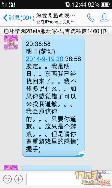 就在昨天。。。事情发生了。。当时下午没课。。陪他玩了一下午。。做了不少副本。也挺开心的。。到了晚上。。他问我要bb。说借他玩玩。。我当时没多想。就把自己的猫灵借了他。。。