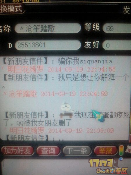 我当时才知道不对。。。其实也没被骗多少。。毕竟都不是特别值钱的东西。。加起来大概价值9000万梦幻币吧。。但是心里很难受。。毕竟都是一起玩了那么久了。算是梦幻里最好的朋友了。。。我当时就在那想。。难道我们的友谊就价值9000万么。。。