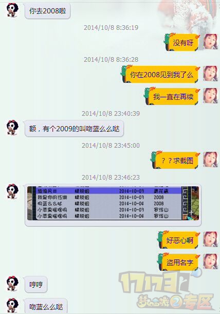 现在处于不怎么上游戏的状态,东西也摆在藏宝阁随时等着卖掉,可是今天有朋友问我转到2008了吗!我很惊讶,表示没有,本人一直在再续玩得好好的,于是我就上了一个2008的0级小号 正好遇上那个盗名字的。我是不是太好脾气了。先上本尊的资料在放盗名字的人。大家做个对比。