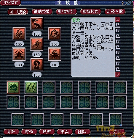 雾杀。类似紧箍咒的效果,伤害和灵力有关系,在通天经脉这个技能就是一个鸡肋。无亮点的。