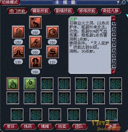 炎护,梦幻版魔法护盾,1点伤害1点MP!怎么说呢?双刃剑吧,法系没蓝的真的比没血药尴尬得多,好在神木林基础技能是加蓝的,不过话说回来,如果你按照我的思路推灵血的话,防御可能就会比较低,如果有回蓝的特技再配合法宝神木鼎的情况下,可以适当用下,但是绝对不推荐经常用,对于全体神木来说,这个技能性价比要高得多,因为血雨是不需要蓝的,不过全体神木估计也没多少蓝可以耗,因此,这个技能使用时需要注意2点,第一个预判、第二个防空蓝。