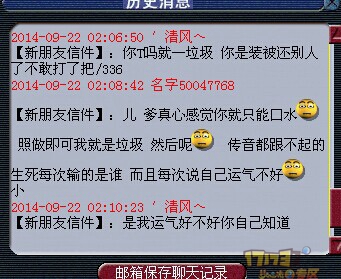 还有一些截图更逗,没保存 称全区追杀我。 大家记住这个逗比吧。